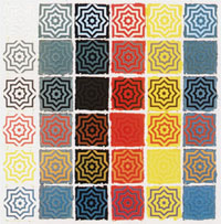 Composed of 36 individually printed panels in all 36 two-color combinations of white,