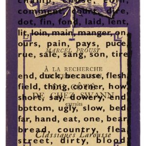 LISTE/LISTA/LIST was made for a group exhibition at Randolph Street Gallery in Chicago in 1992 titled “Multiples ’92.” The artist’s contribution was a selection of over twenty classic French and Spanish paperback books whose covers had been screenprinted with her texts: the reprised “Liste/List” (from the 1990 List Portfolio) and a newly created Spanish/English version titled “Lista/List” comprised of Spanish/English words. The dual-language texts consists of a prose-stye list of French or Spanish words that look like English words, followed by their translated counterparts (rue/street or come/eats). The lists appear to be a sort of glossary for the contents of the books, when in reality their linguistic ambiguity prevents any useful guidance. The sound and meaning of the words contradict their visual commonality and demonstrate the fragility of cross-cultural communication.