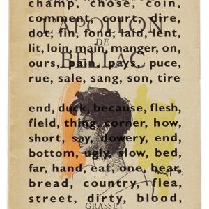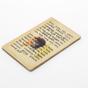 LISTE/LISTA/LIST was made for a group exhibition at Randolph Street Gallery in Chicago in 1992 titled “Multiples ’92.” The artist’s contribution was a selection of over twenty classic French and Spanish paperback books whose covers had been screenprinted with her texts: the reprised “Liste/List” (from the 1990 List Portfolio) and a newly created Spanish/English version titled “Lista/List” comprised of Spanish/English words. The dual-language texts consists of a prose-stye list of French or Spanish words that look like English words, followed by their translated counterparts (rue/street or come/eats). The lists appear to be a sort of glossary for the contents of the books, when in reality their linguistic ambiguity prevents any useful guidance. The sound and meaning of the words contradict their visual commonality and demonstrate the fragility of cross-cultural communication.