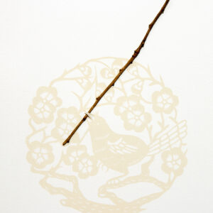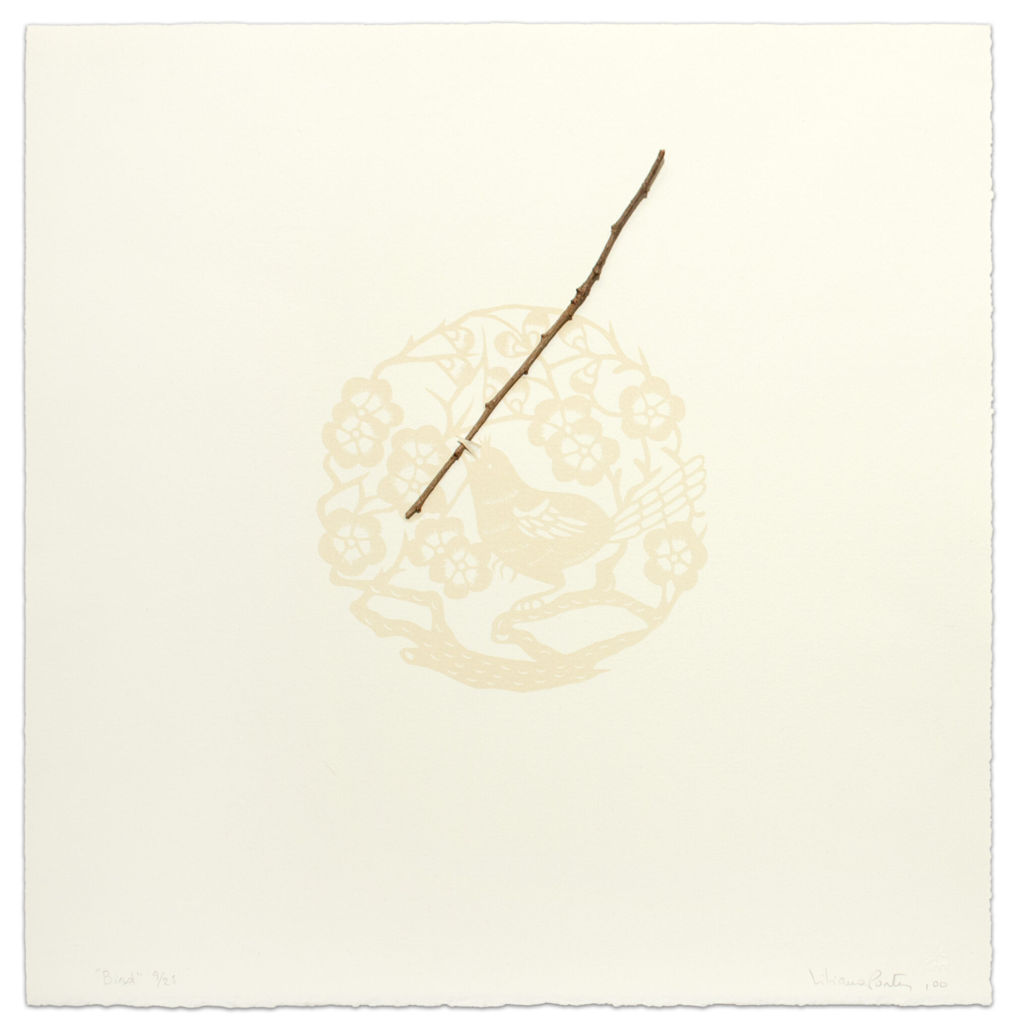 Lithograph and branch on white Somerset satin paper with deckled edge
