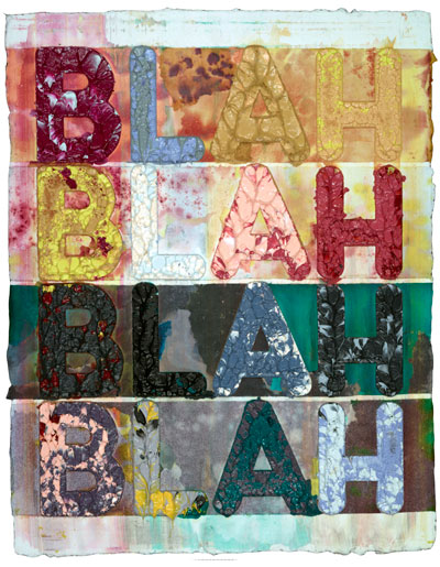 Monoprint with collage, engraving and embossment on hand-dyed Twinrocker paper