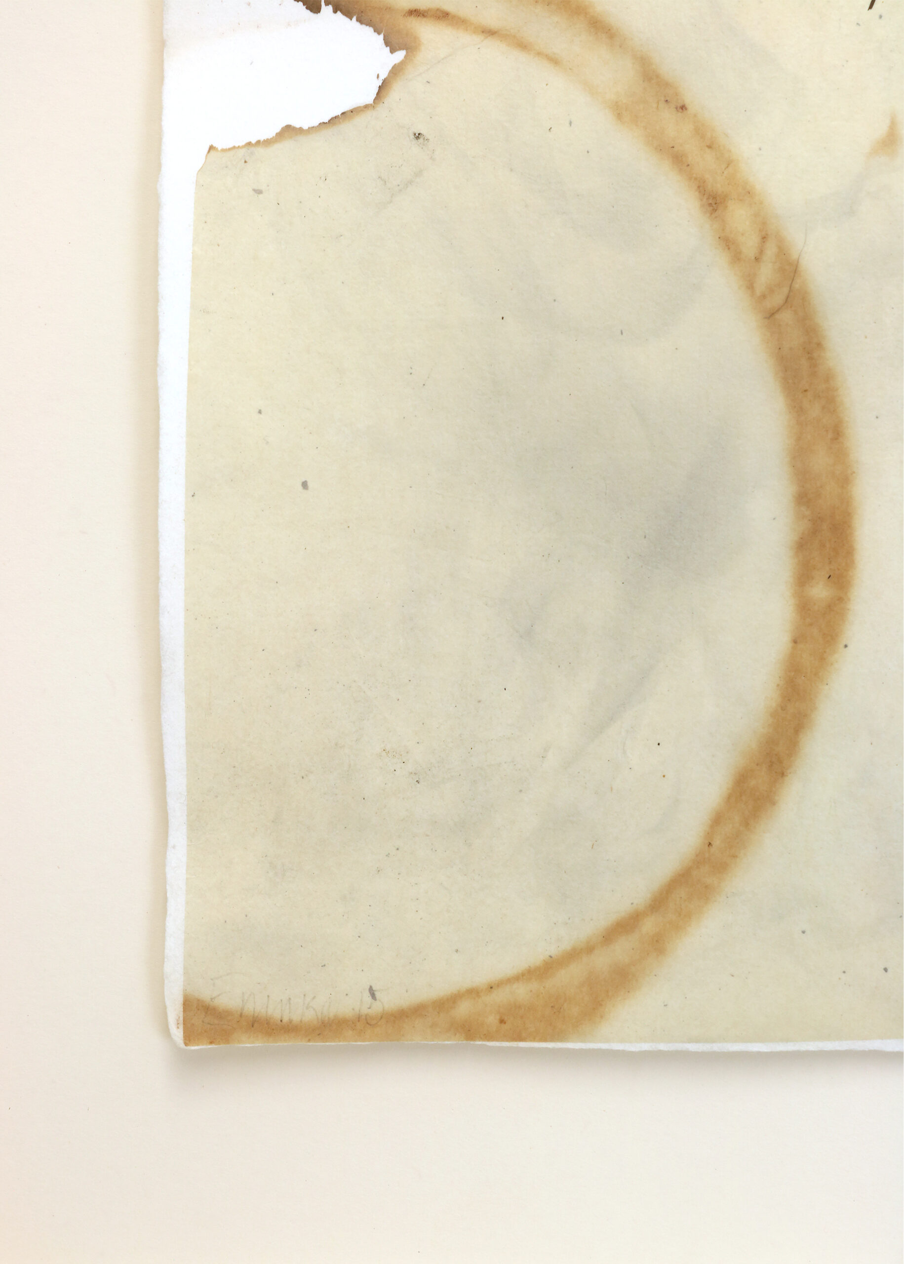 Smoked paper monotype with branding on Gampi paper and chine collé onto Farnsworth paper