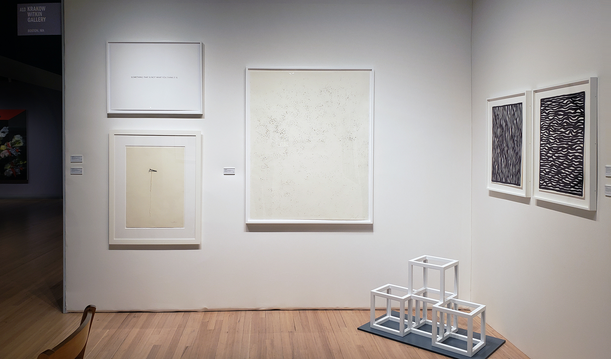 Robert Barry, Liliana Porter, Tara Donovan, and Sol LeWitt (wall and floor)