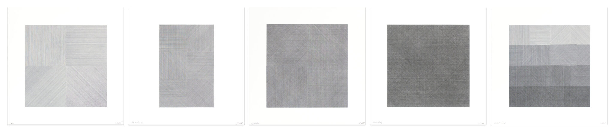 Image size: 14 x 14 inches each (#s 1, 3, 4 and 5) (35.6 x 35.6 cm each), 14 x 9 3/8 inches (#2) (35.6 x 23.8 cm)