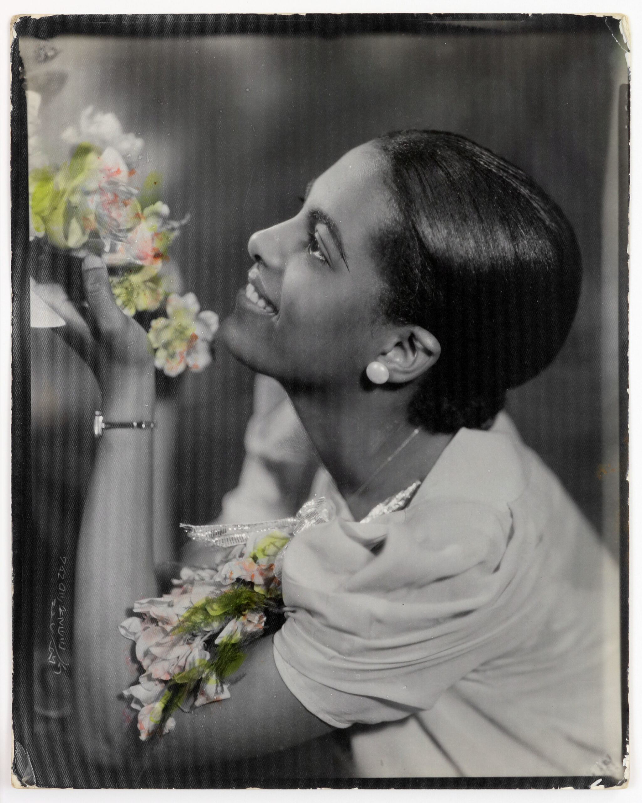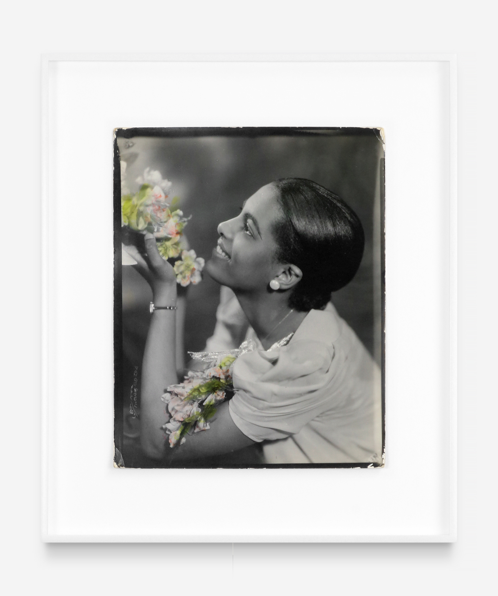 James Van Der Zee (1886–1983) was one of the most renowned photographers of the Harlem Renaissance. His expansive practice captured the glamour of the burgeoning arts and music scenes, as well as everyday life during the Harlem Renaissance. He carefully set up his portraits of Black subjects by using painted backdrops, luxurious props, creating elaborate tableaux for his subjects, and bathing them in flattering lighting. After developing his photographs, he would, at times, hand-color his images. Highlighting the elegance and refinement of his subjects was his mission, be it Marcus Garvey, the noted civil rights activist and politician, multiple generations celebrating a family event, or a proud individual.