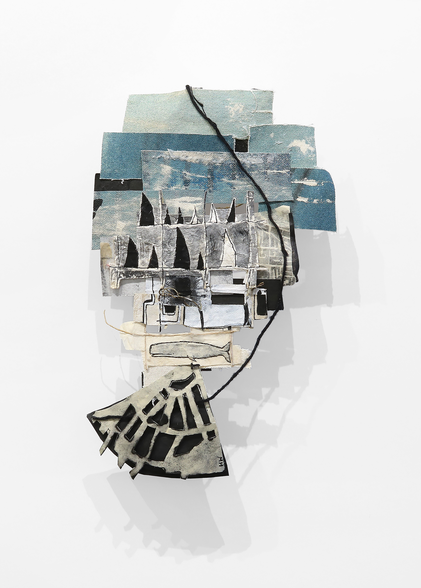 Ink, gouache, acrylic, canvas, paper, string, and cast shadow