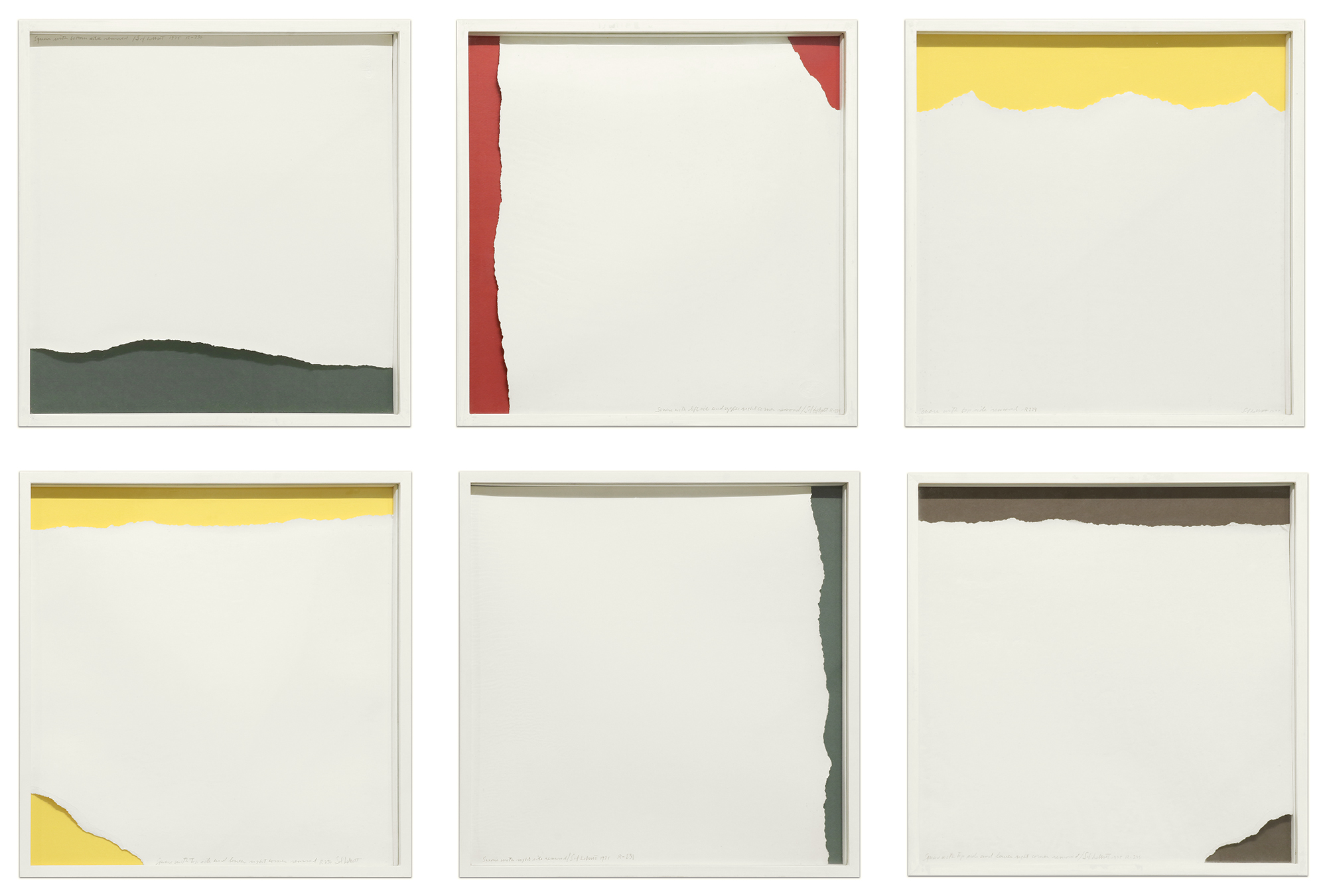 Signed, dated, and titled along bottom borders of five and along upper border of one drawing.