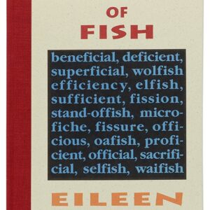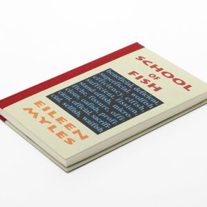 SCHOOL OF FISH – In 1997, the artist received a hand-written letter from the great poet, Eileen Myles, asking her if she would design a cover for her book School of Fish. The artist wasn’t familiar with Myles’ work 24 years ago, but she has come to know and love it. (Since then, Myles has also written about Rosen’s work in numerous publications.) The list has nothing to do with fish, but everything to do with fishy-sounding words, thus the eye reads one thing but the mind’s ear hears another.