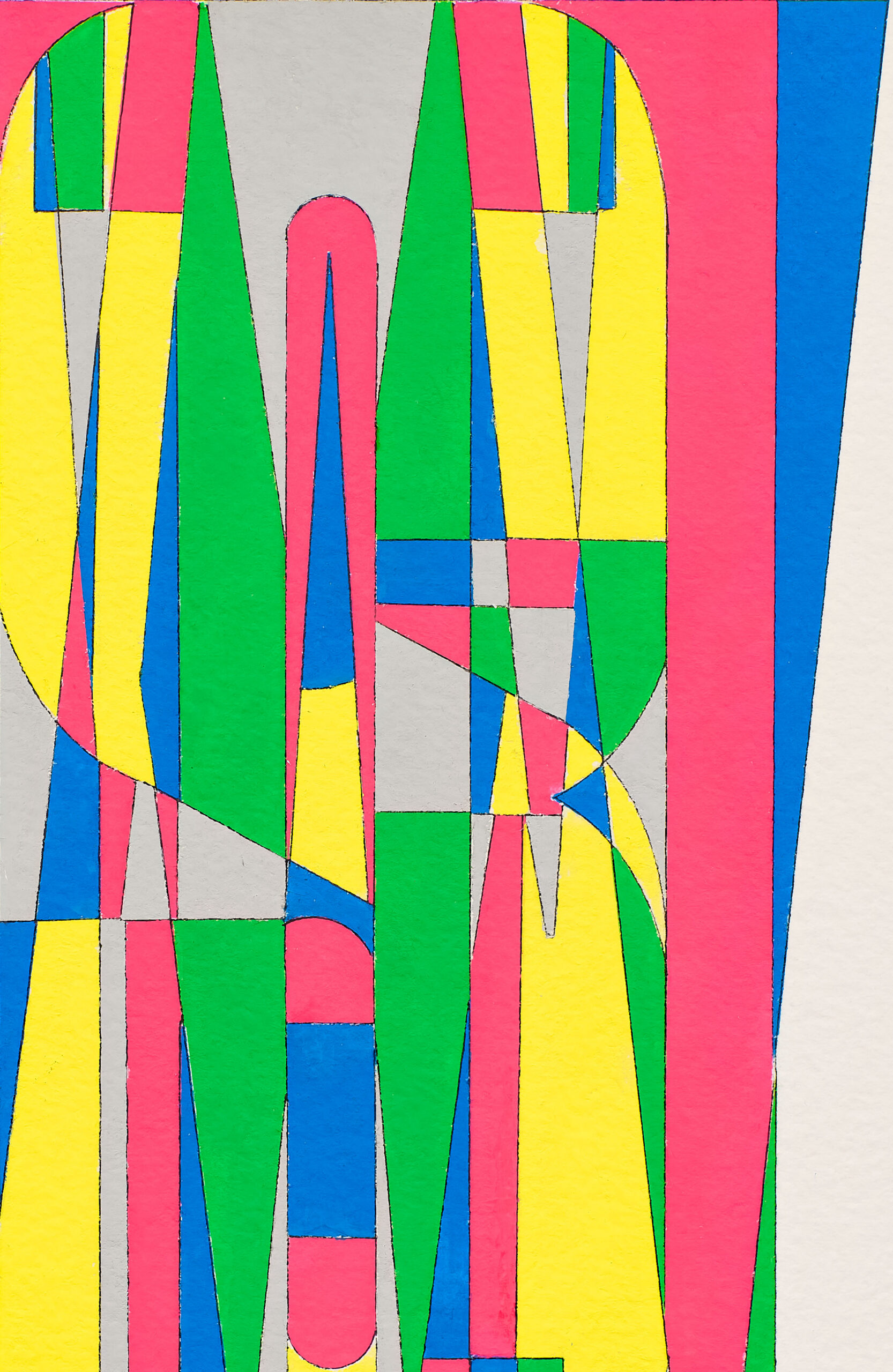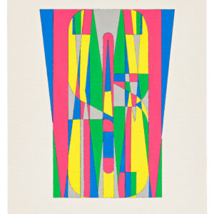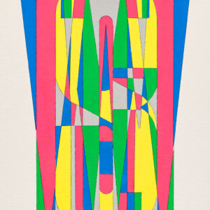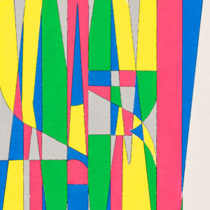 SWEET DREAMS is one of a 2012 series which makes a stab at abstraction. Instead of writing the phrase, “Sweet Dreams” with each letter next to the others, Rosen has stacked the letters on top of each other. The two rules that Rosen applied to this series are the following: the word or phrase must begin and end with the same letter, creating an object to be seen rather than a word to be read. The second rule is that the meaning of the phrase must refer in some way to its scrambled and illegible appearance. Thus, SWEET DREAMS, with its chaotic, fragmented mosaic of color, created by the outlined overlapping letters s-w-e-e-t d-r-e-a-m-s, does indeed suggest the surreality of a dream.