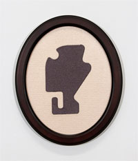 Unique digitized embroidered shape on cotton fabric in oval walnut frame