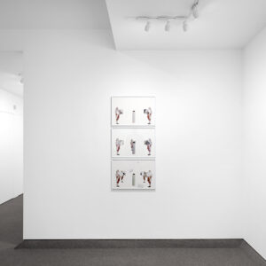 Suite of three lithographs, each in color, with collaged elements and hand drawing in red pencil and graphite