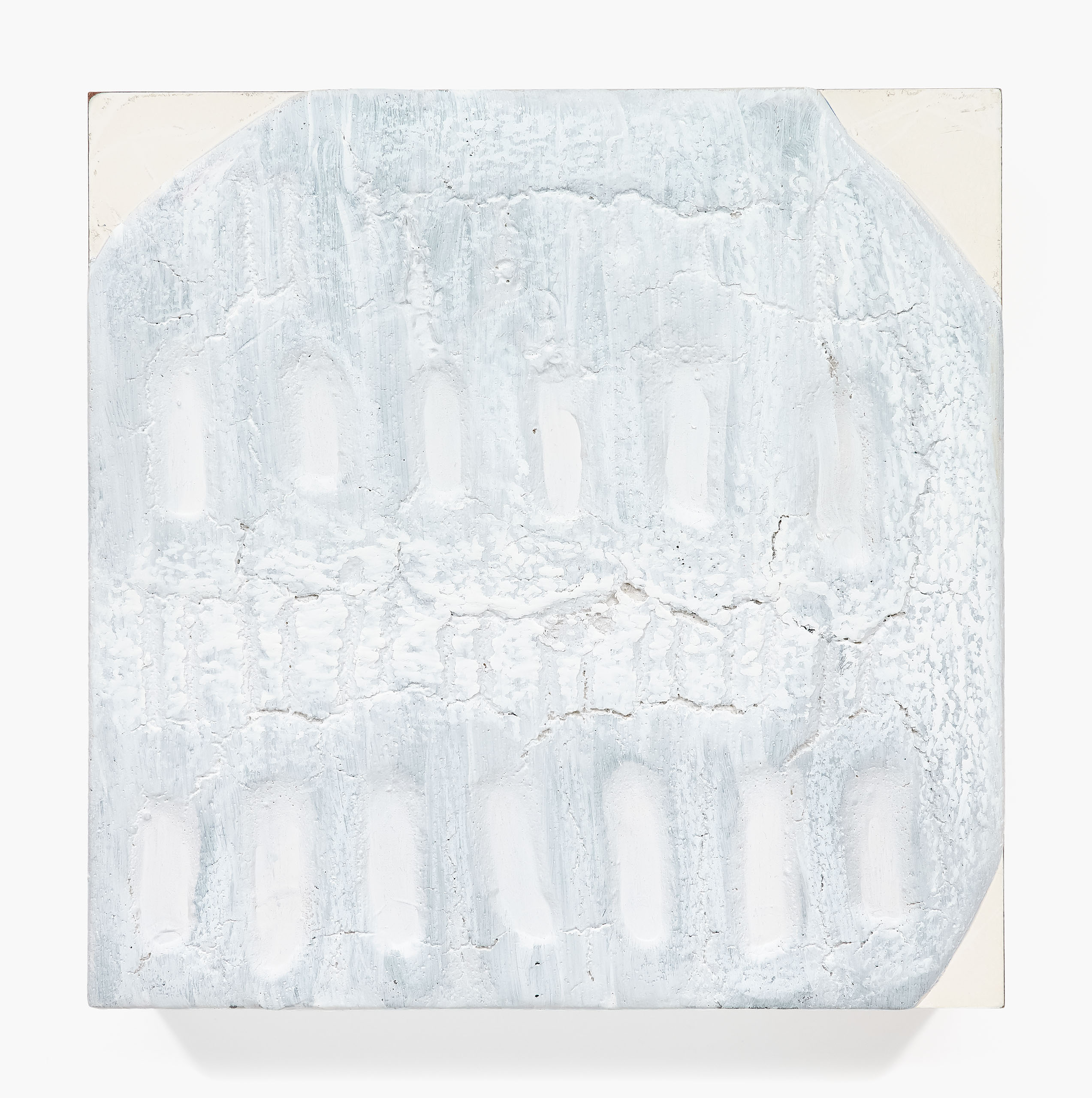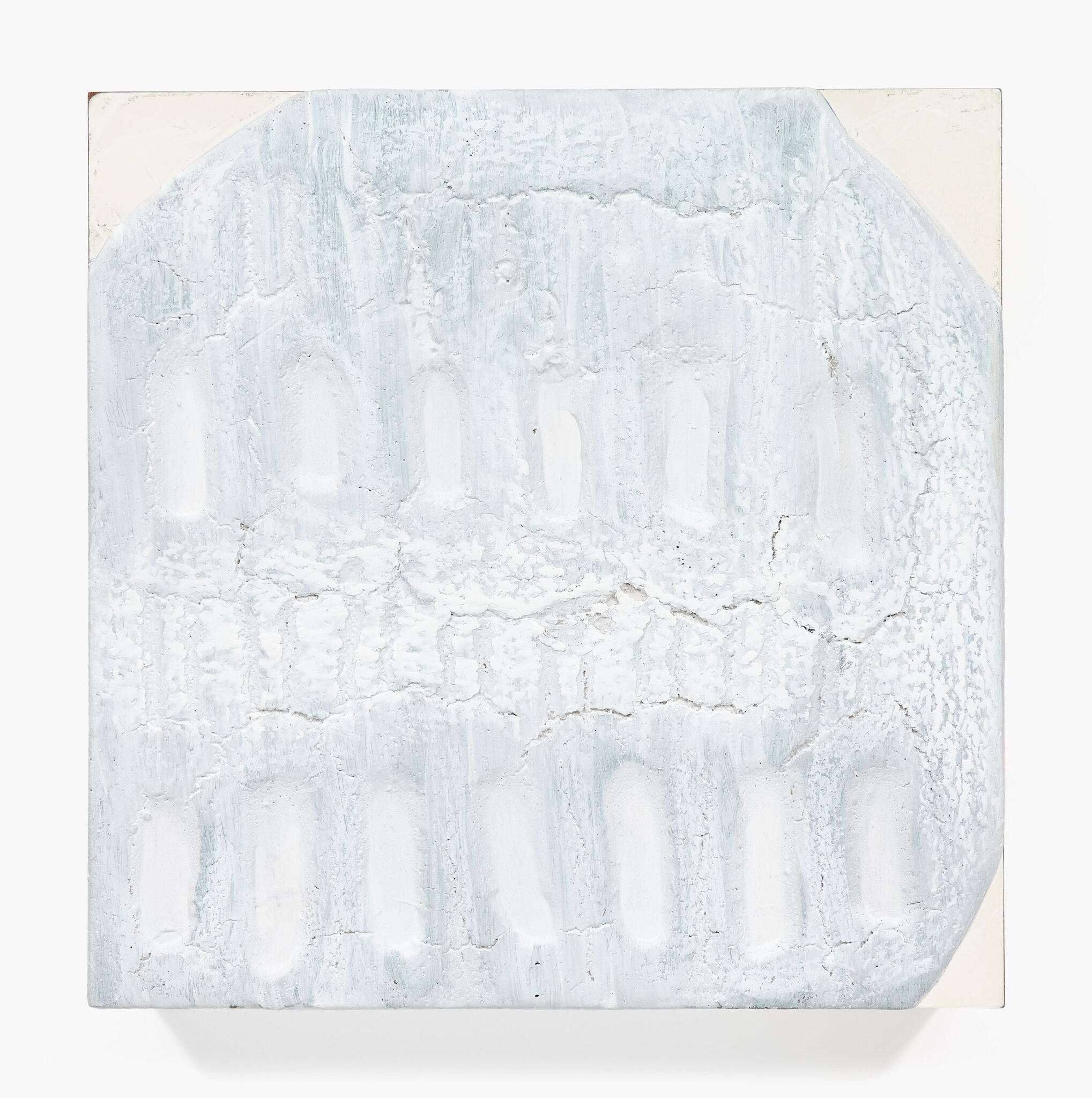 Gesso, marble dust, acrylic paint, Caran d'Ache crayon, encaustic paint wax, and graphite on wood panel