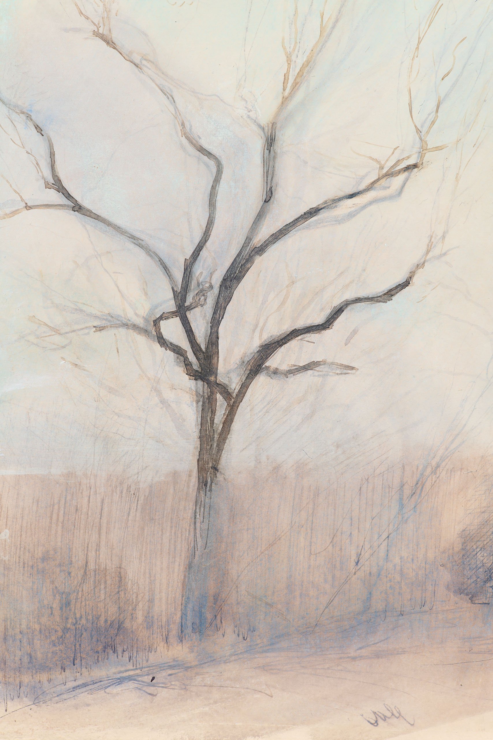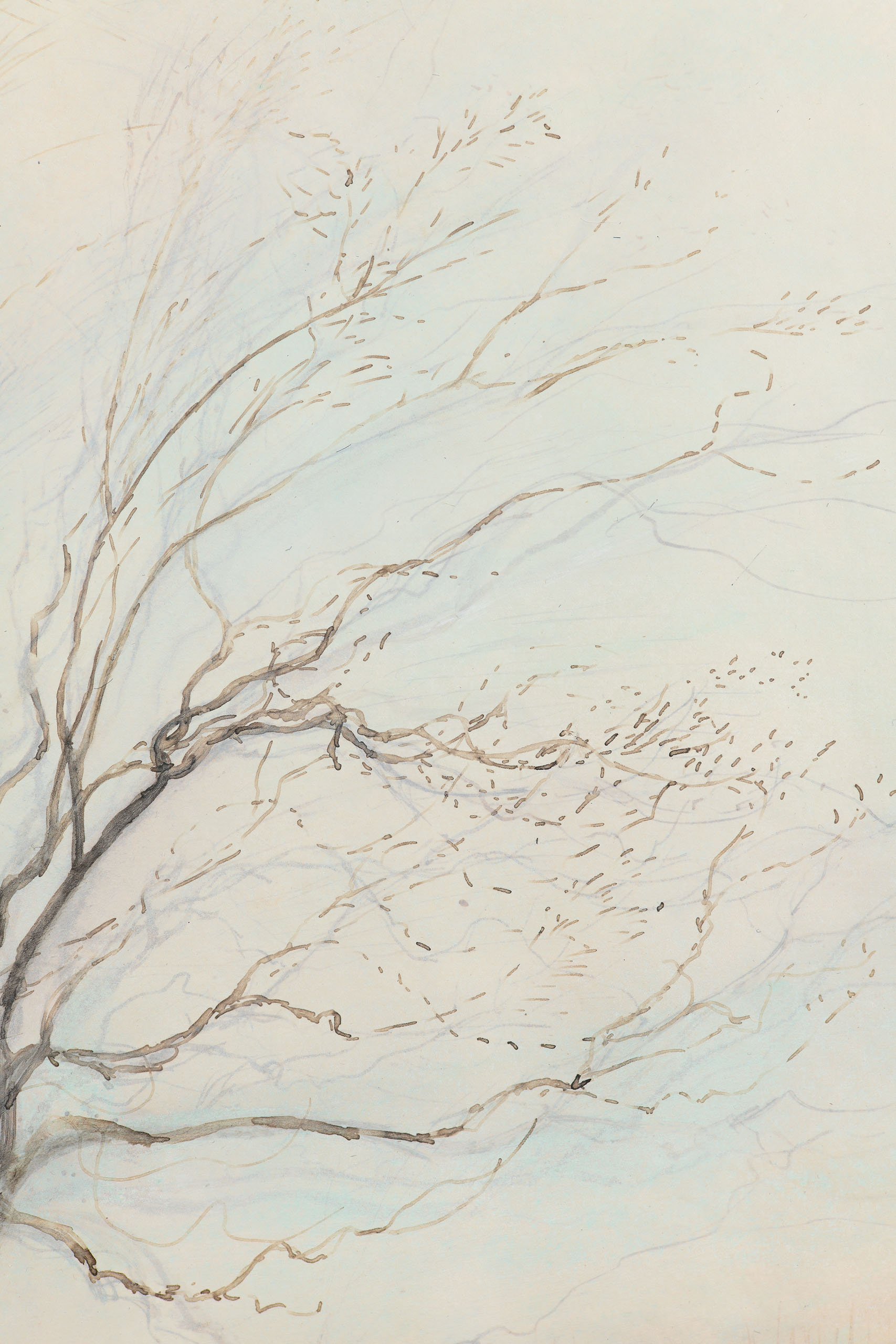Signed verso “Sylvia Plimack Mangold”, dated “12/29/85”, and media detailed as “ink, temp[e]ra, acrylic