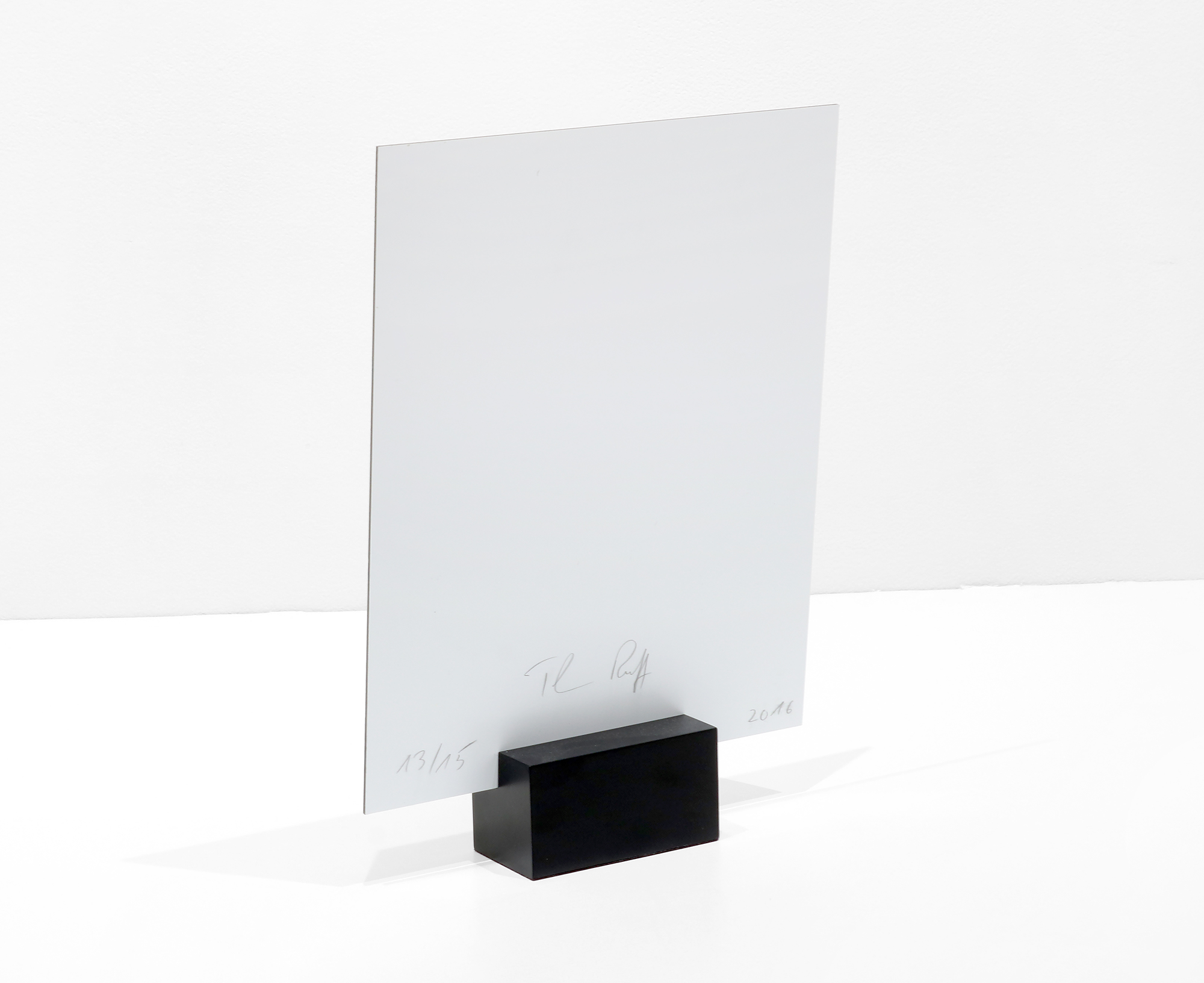 Thomas Ruff’s series of works titled “press++,” utilizes archived media photographs as both source imagery and source object. Ruff reproduced images of both the fronts and backs of the pieces (from various American archives, used over numerous decades, oftentimes still showing crop marks, comments, etc.) and then layered them to create new single-sided images. Furthermore, the photos are mounted on aluminum and displayed on small artist-designed stands so as to illuminate the object-ness of these pieces. The pieces compress the archive photos’ images, subjects, contexts and histories to create new works that both celebrate and question the original photographs and their subsequent uses, all while leaving the new works’ final forms’ purpose open-ended.