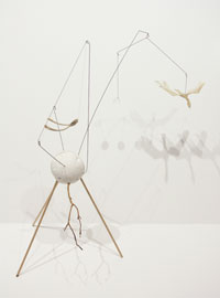 Plaster, wire, paper, wood, wishbone, plexiglass and thread