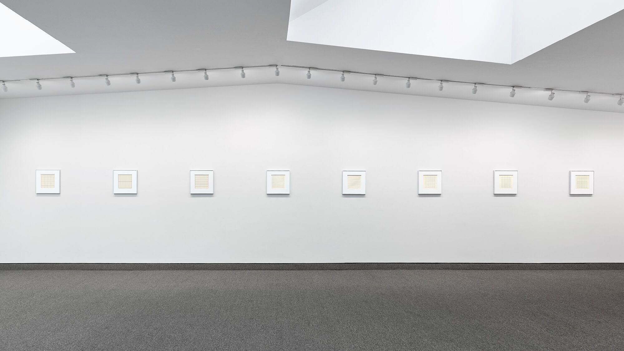 In her private writings, Martin affirms the balance of calculation and intuition in her compositions, stating, “My formats are square, but the grids never are absolutely square; they are rectangles … When I cover the square surface with rectangles, it lightens the weight of the square, destroys its power.”
